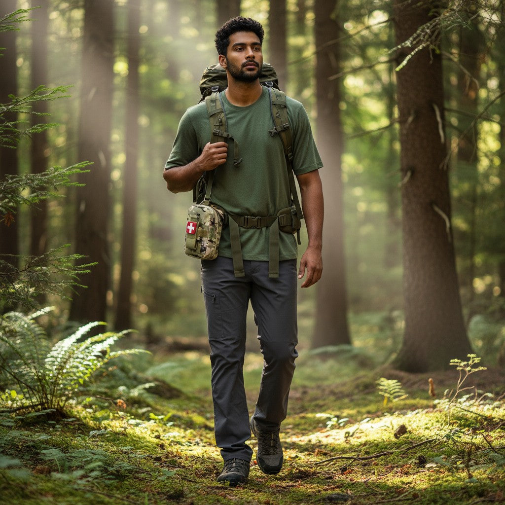 Straps weave through loops on backpacks, belts, or tactical gear.